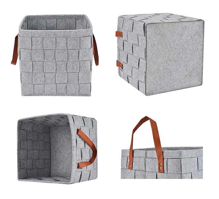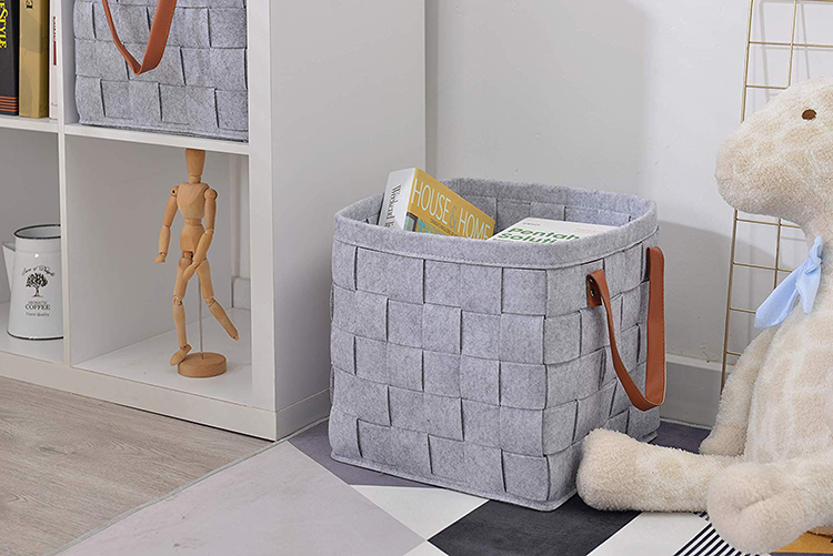 Practical felt storage baskets,with the handle on both side,easy to move and take away; Collapsible design, can be easily folded for space-saving storage when not in use or when needing to transport.