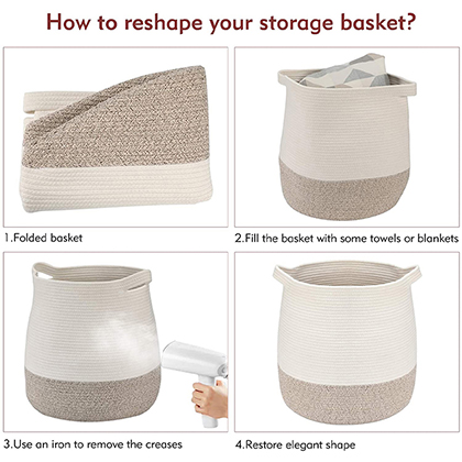 Function: This woven cotton rope basket is ideal for sorting clothes and other handy items or supplies in the bedroom, living room, laundry room, kids’ room, or any room you want to keep clean and tidy. Use it as a storage Nursery Bin, toys organizer, blanket basket or laundry basket.