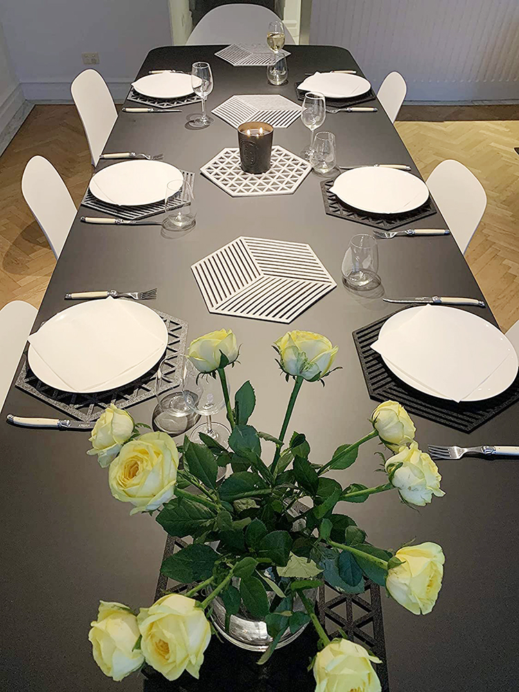 Felt Material: High quality Felt material, soft, durable,absorbent. Polyester felt make these placemats feel soft than normal plastic placemats.placemats for plates protects table from scratches and provides heat-resistant layer which saves table from the hot plate.